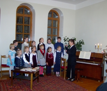 Вечер начался с выступления детского церковного хора, были исполнены произведения, которые поются на Литургии - "Единородный Сыне" и "Святый Боже". Детское пение приковывало внимание слушателей не столько виртуозностью исполнения, которая, безусловно еще впереди у этих маленьких хористов, сколько неподдельным усердием и самоотдачей детских сердец.