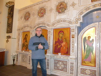 Даже в выборе материала Бог помогал нам. Намеревались приобрести искусственный мрамор, - вспоминает Юрий, - и я уже поехал за ним в Вильнюс, и вдруг звонит мне наш висагинский предприниматель Виктор Лакин и называет мне магазин, где есть настоящий итальянский мрамор, да еще в три раза дешевле искусственного, и прекрасный материал для мозаики.