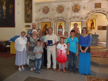 После торжественного вручения медали отцом Иосифом и Галиной Удовенко, которая регулярно готовит документы для представления кандидатур на эту награду, церковный хор и прихожане вместе пропели семье Герасимовых «Многая лета».