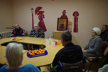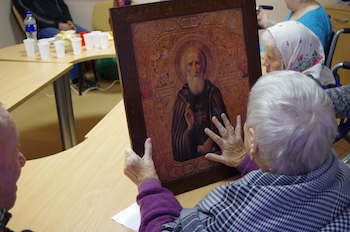 В отделении по уходу лекции и беседы о Сергии Радонежском прослушали не только те, кто смог на своих ногах или в коляске прибыть в общий зал, но и лежачие пациенты. Прихожане храма посетили каждую палату, рассказав о цели визита. «Больные были очень рады, они с большим вниманием слушали о житии Сергия Радонежского, совершали крестное знамение перед его иконой, прикладывались к ней, - рассказывает М. Карчанова. - Каждый испил святой воды, вкусил просфоры и был угощен фруктами».