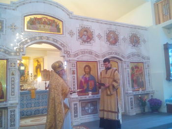 Богослужение началось с перенесения в верхний придел храма новой иконы преподобной Евфросинии, игуменьи Полоцкой. Литургию возглавил Архиепископ Виленский и Литовский Иннокентий.
