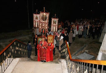 В течение всего дня после 15 часов и до вечера к храму шли радостные верующие со своими детьми, друзьями и близкими, неся корзинки, полные пасхальных яиц и куличей. Священники о. Георгий и о. Иосиф с молитвой окропляли пасхальную снедь Святой водой.