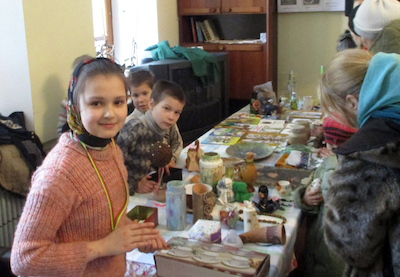 Как и в прошлый раз, взрослым с радостью помогали дети, проявляя невероятную активность: и покупателей зазывали, и товар рекламировали на все лады. Дети торговали за своими отдельными столами, предлагая свои поделки и игрушки. Нужно было видеть их горячее желание внести свой вклад на благо церкви.
