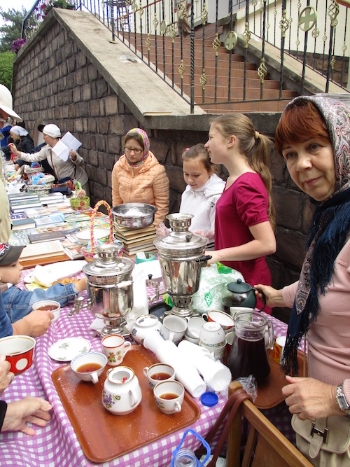 12 июня во дворе нашего храма прошла очередная благотворительная ярмарка. Было много сувениров, различных поделок и книг. Были вкусные булочки и горячий чай. Была веселая музыка. Подготовили и провели мастер-классы Мария Александровна Щербакова(гжель) и Наталья Марченко (фитодизайн). Жаль только, не удалось договориться с погодой. Поэтому не состоялись в полном объеме игры, которые планировали провести скауты (рук. Лариса Хречкова).