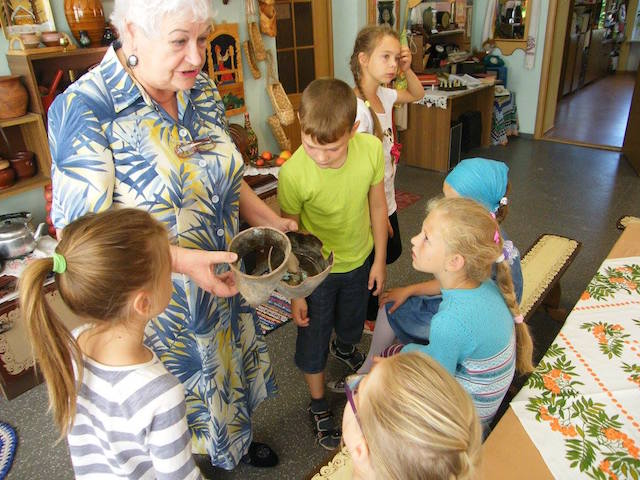 Сегодня, 22 июля, дети воскресной приходской школы посетили «комнату старых вещей», как называет ее хозяйка. Дети с удовольствием слушали рассказ Марии Александровны и с любопытством исследовали предметы, о назначении которых они до сей поры даже представления не имели. После экскурсии детям было предложено выбрать по одному экспонату, чтобы нарисовать его. А как же иначе, ведь они пришли в клуб художников «Palete», девиз которого, кстати, очень соответствовал ситуации: «Один художник нарисовал квадрат и назвал его картиной – получилось! Ну и у вас получится!».