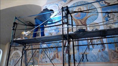 В дальнейших планах художников - еще более масштабная работа - роспись купола. Где планируются изображения евангелистов, а венчать купол будет сцена Вознесения Христа.