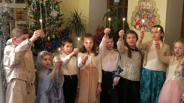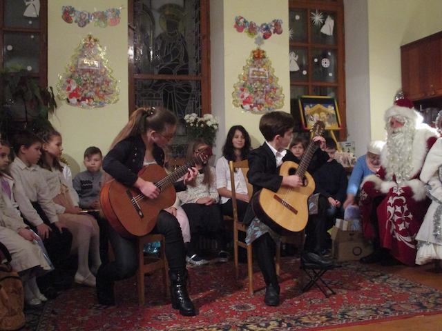 В первом отделении концерта был устроен живой вертеп, где ожила библейская история Боговоплощения. Дети распевали духовные песни, колядки, читали стихи. Юные христославы с ангельскими крыльями за спиной водили веселые хороводы, и предавались радостному веселью, славя рождение Спасителя.