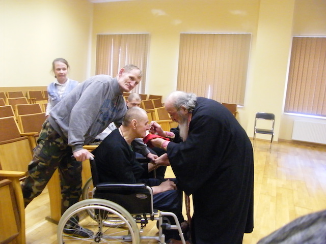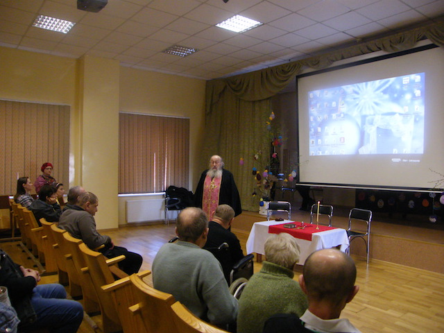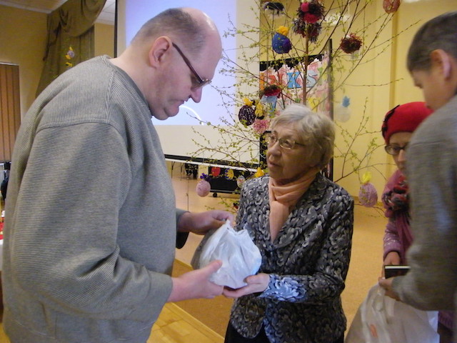 В четверг Светлой седмицы, 20 апреля, представители Введено-Пантелеимоновского прихода – настоятель прот. Иосиф Зетеишвили, прихожанка Марина Корчанова, координатор по молодежным делам Александр Блюм и координатор по социальному служению Алеся Блюм посетили Висагинский дом социальной опеки. Православных пациентов учреждения поздравили со Светлым Воскресением Христовым. Часы Святой Пасхи исполнил Александр Блюм. Всех желающих причастили Святых Христовых Тайн. На экране был продемонстрирован фильм о праздновании святой Пасхи. Прощаясь, Марина Корчанова вручила постояльцам маленькие праздничные гостинцы, освященные куличи и яйца.