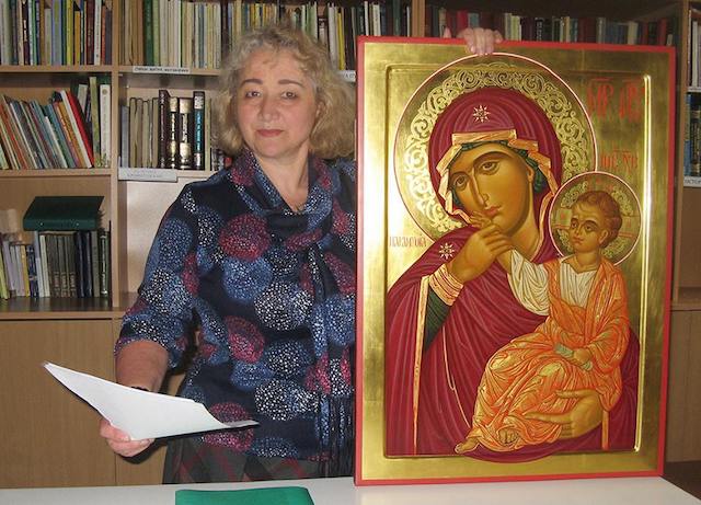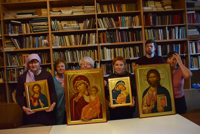 8 июня в библиотеке Введено-Пантелеимоновского прихода состоялась встреча с висагинской художницей-иконописцем Ольгой Кириченко в рамках серии историко-просветительских бесед. Возникновение первых художественных образов на евангельские сюжеты, катакомбная живопись, ранне-византийская мозаика, синайские иконы - темы рассказа-лекции Ольги по истории иконописного искусства. Художница представила свои новые работы: икону Виленских мучеников Антония, Иоанна и Евстафия, иконы Спасителя и Божией Матери, выполненные в византийском стиле и ответила на вопросы прихожан.