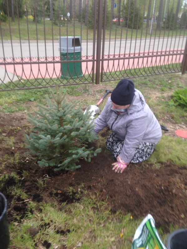 Надеемся, что хорошо приживется и будет радовать всех голубая ель. Посажена верба. Жаль, что удалось найти только один саженец. Если кто-то знает, где можно взять еще саженец вербы или может поделиться, будем благодарны.
