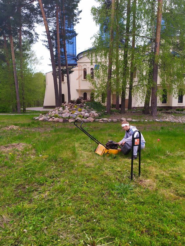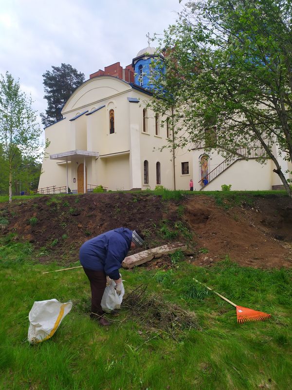 Смягчение карантинных мер позволило, наконец, выйти на маленький необъявленный субботник. Работы на прихрамовом дворе всегда много - уборка территории, подготовка клумб, посадка цветов и деревьев, да и травка подросла - косить пора.