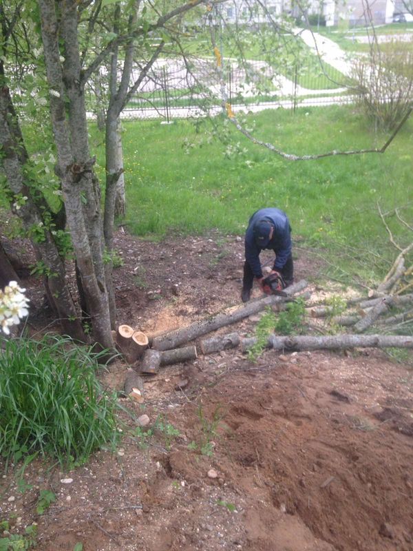 Много пришлось потрудиться над укреплением склонов, здесь оказался кстати оставленный строителями мусор и мужская "тягловая сила".