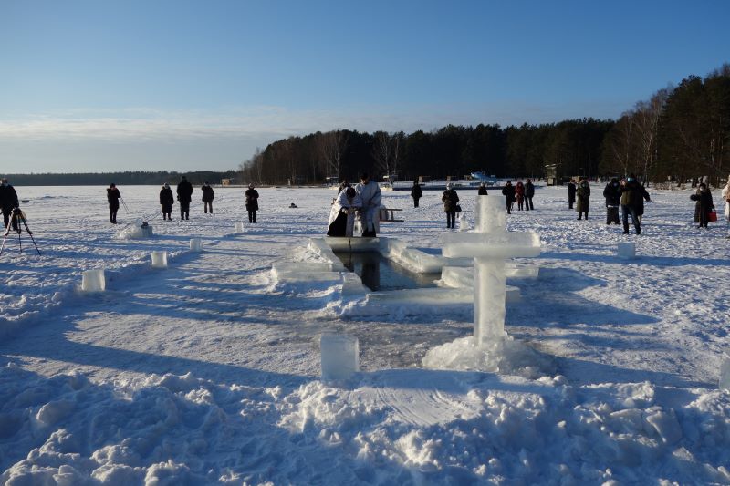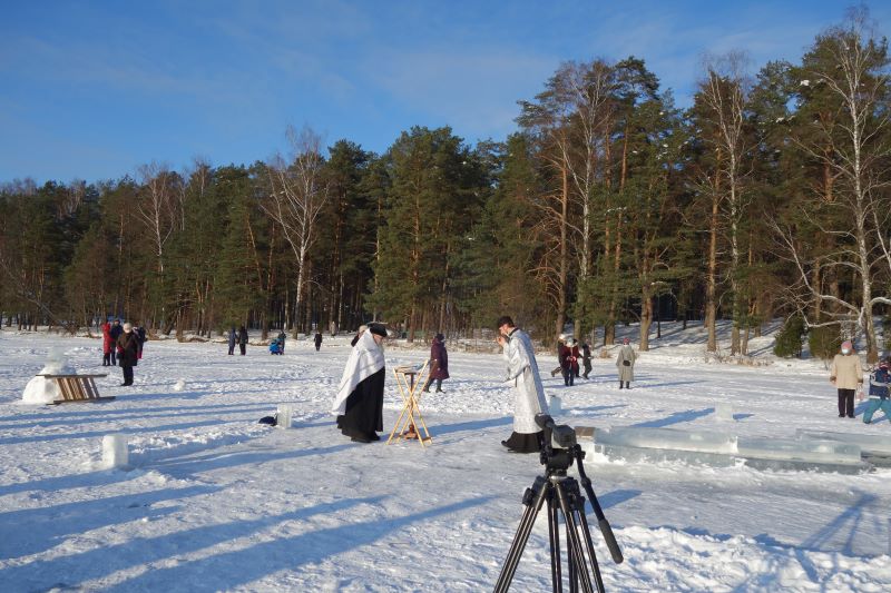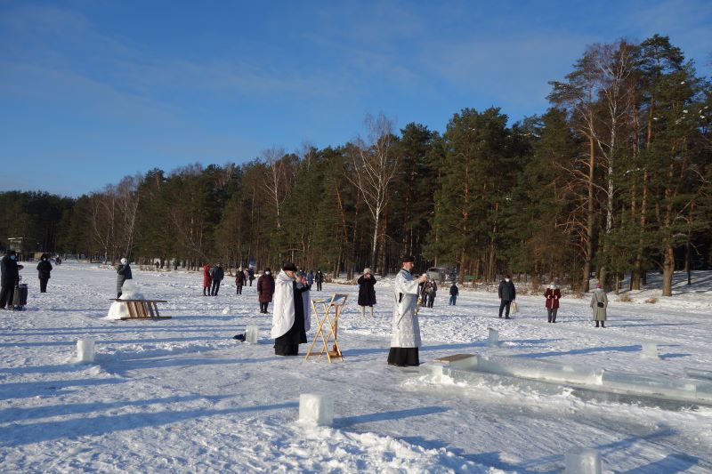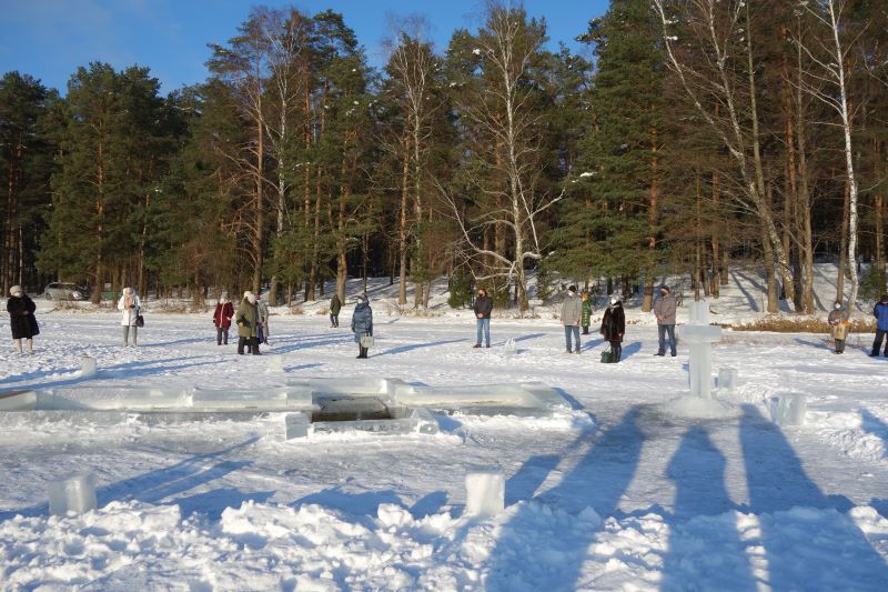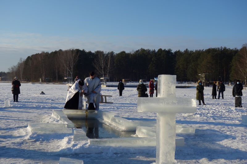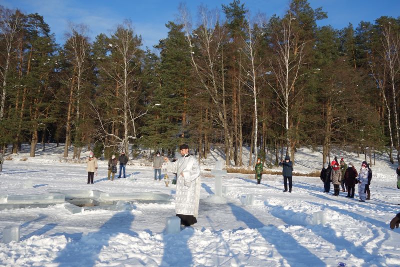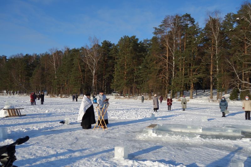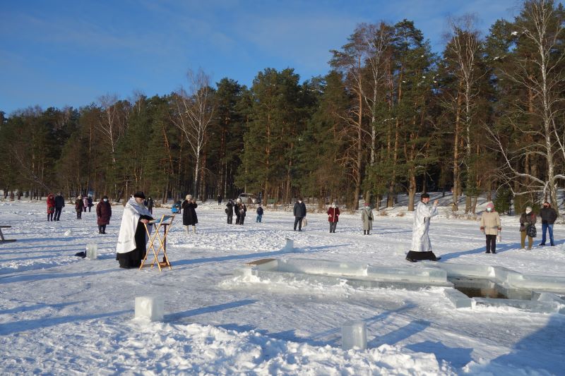Впервые за всю историю висагинской православной общины Великое водосвятие прошло без большого скопления народа, как не было и традиционного крестного хода на иордань. Хотя по всем правилам была вырублена крещенская прорубь в форме креста, называемая иорданью, где священник и диакон, вдвоем, без сопровождения певчих и чтецов, совершили освящение воды великим чином. После чего самые отважные могли окунуться в иордань. Также нашлись и желающие набрать крещенской воды. Сегодня таких было немного. Возможно, в течение дня еще несколько отчаянных смельчаков совершат омовение.