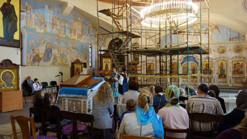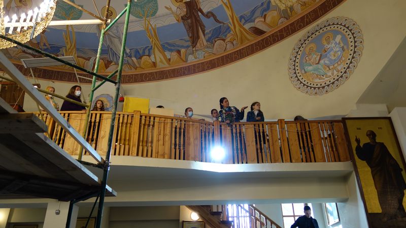 В храме вновь установлены леса – вскоре автор Алина Князева приступит к монтажу фресок купольного пространства.