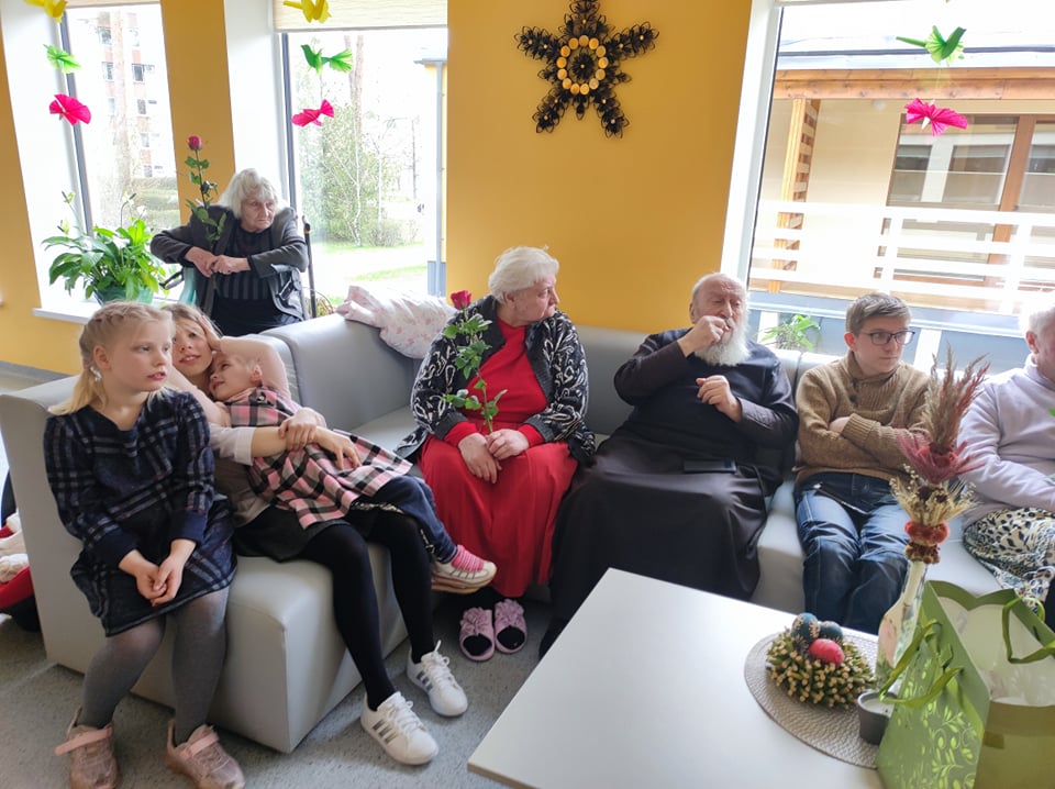 1 мая, в Фомино воскресенье (Антипасха), о. Иосиф и Семейный клуб (рук. Ирина Зюзева) посетили Дом самостоятельного проживания. О. Иосиф освятил помещения, раздал артос, побеседовал с жильцами этого Дома, ответил на их вопросы, а дети устроили маленький концерт. Скромные гостинцы для всех и цветы для женщин создали праздничное настроение. Ведь в Литве в это воскресенье отмечается День матери.