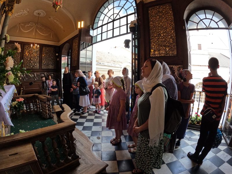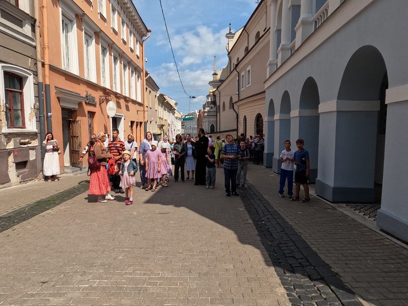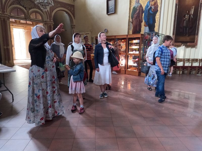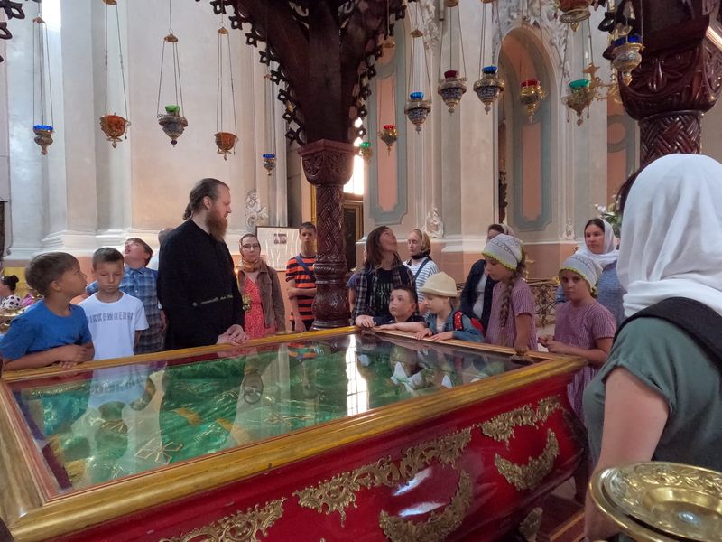 Экскурсию провёл иеромонах Никита Васильев. Батюшка доходчиво для детского восприятия рассказал об истории монастыря и житии мучеников, а затем провёл нашу щебечущую компанию к Остробрамской иконе Божией Матери. Большая благодарность ему за такой замечательный рассказ и уделённое нам время.